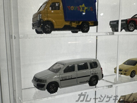 サイン枠の二つ程上にプロボックスが有る事が前の画像で確認出来たので少しばかり手を伸ばして見学。写真を収めてきましたが、この一台がなかなかレアな一台。山口モータースと書かれた個体はトミカくじ「職人車」シリーズの一台、山口と言うのは、実際にプロボックスオーナーだったぐっさん(山口 智充さん)の苗字から取った仮想企業。トミカ40周年時代の物なので、2010年頃の物です。いまではプレミア価格がついてるのでなかなかお高い取引がされているようです。