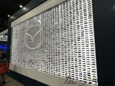 マツダブースでは東京モビリティショーでも展示されていたミニカーの壁も展示されていました。