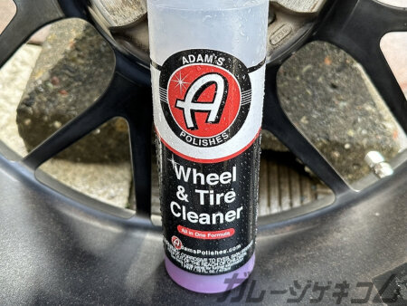 天気も良く、冬の間お疲れさまでしたと言う意味も込めて、洗って収納しようと思いアダムスポリッシュのホイール&タイヤクリーナー。タイヤ、ホイールを同時に簡単に洗浄できるクリーナーを使って汚れを軽く落としておきます。