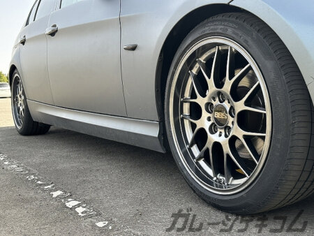 夏仕様として選んだのは王道のBBSのRG-R、18インチ。 カラーはダイヤモンドブラックをチョイス。どうしてもトムス伝統の井桁ホイールを履かせたい病気を患っている中で「どう見ても井桁」と言い張れそうなデザインだったと言う単純な理由でチョイス。多分若い勢い有ったらリスクを考えずに8本位スポーク切ってる。 そこは本家トムスがVP-8と言う進化系ツイン井桁を出していた事でその勢いを止める事が出来たのは否定できない。タイヤはダンロップ VEURO VE304(2023年製)。