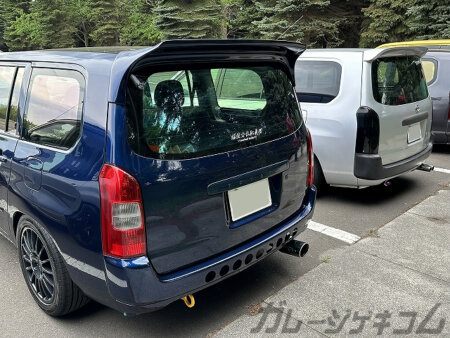 後ろは完全に二台ともプロボックス。プロボックスのリアバンパーのパラシュート効果軽減の為ダクト穴が開いている。見た目にもなかなかレーシーな感じがする。