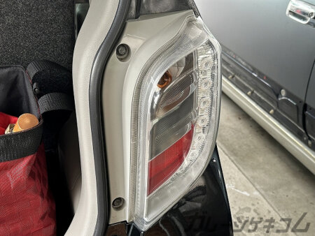テールレンズをLuxe製のライトスモークでラッピング。スモーク系は特に塗装するとなると難易度が高く、均一にムラなくと言うのがなかなか難しい。今回使っているLuxe製はエアリリースが入っている物で、カーラッピングを経験している人にとっては難易度はさほど大差ない位に貼る事が出来る(もちろん形状によって難易度は違う)。今回テールレンズに施工した理由としては意外と太陽が出ている昼間の視認性が悪い気がしていたので少しでも視認性がよくなるようにと思い施工してみた。この代の次のモデル(2代目350系)で、テールレンズが赤テールになっている事からも視認性は少し悪かったから改良されたのかもしれない。テールレンズ単体の話は『【LA300系総合】リアテールランプの違い』でも触れている。