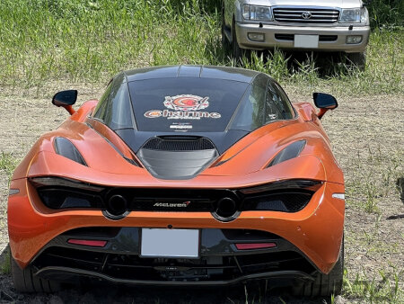 マクラーレン720S、スーパーカーも未舗装駐車場に置かれていました。 こちらは札幌市清田区にあるカフェ・シャルム(Cafe Charme)さんとこの車輌との事。展示してあるという事なので気になる方は行ってみては?