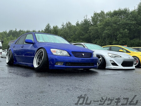 こちらのアルテッツァはよくわからないのですが、写真に収めとかないと後悔しそうと言う気配を感じて撮影。クルマに呼ばれたと言うのも変な話ですがカスタムカーのイベントに行くとその気配出す車が一台二台あるんですよ。