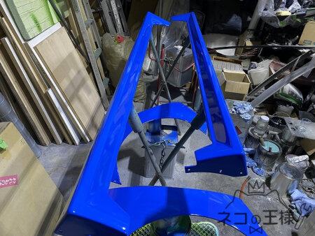 フェンダー、サイドステップなど、外せる部品は外して塗装していきます。本人曰くそこまで大掛かりにやっていく予定が無かったとの事ですが、結果きっちり塗装が入った事で神経質な書き手の人も納得な仕上がりが出来上がります。