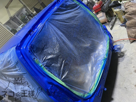 外したリアゲートの裏も丁寧に塗っていく。営業車故、内装部品の面積は少ないので丸々塗った方がカッコイイ。
