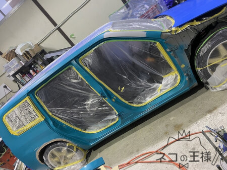 ドアも外してボディとドアは別塗りで作業をしていく。