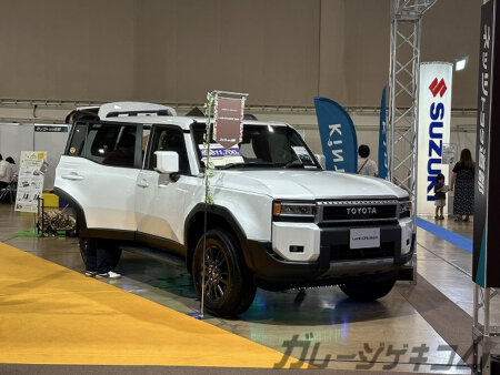 もう一台。こちらはあっさりとしたベース的なランクル250、先程のモデリスタ武装した車よりシンプルな見た目に。 …しかしニューカーフェスタで毎回思うのですが、今年ももれなく(?)他店被りが見受けられました。ランクル2台、ルーミー3台、シエンタ3台、アクア2台、カローラクロス3台の仕様違いとは言え、大きな括りで言えば同車種出展なんですよ。これは損してるような気がするんですよね。