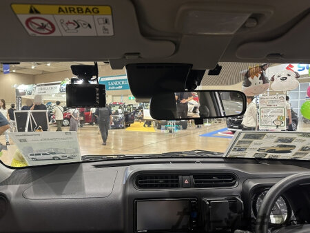 2024年5月からバックモニターの義務化が始まる事によって、インナーミラーがバックモニター内蔵自動防眩タイプに変更された。今回の車輌はそれ以前に登録されているモデルで制作されているので、バックカメラの形状が異なる旧来のデーラーオプション品。取り付け位置は共に近い。先に掲載したインナーミラーも従来のモデルである。現行モデルではインナーミラー中央部にAUTOの文字と自動防眩のセンサーが付属され、古のレバーはなくなります。