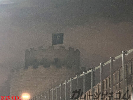 北広島市のクッパ城と言われる共栄調整槽。12月頃にとうとう旗が立てられました。