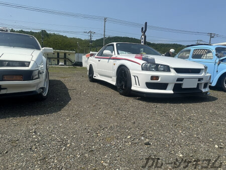何度か対向車線で見掛けていたニスモストライプのR34。江別市のハッピープレイス製でオーナーの拘りがこのシンプルなストライプの中にも詰め込まれている。間近で見た時に真っ先にドアの隙間のストライプ処理を確認しましたよ。もう納得の仕上がりでした。そうそうこういった細かいとこが重要なのよね~(オーナーも納得の出来)。