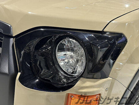 クラシカルな見た目にする手っ取り早い手法としては規格ヘッドライトへの換装だろうか?この見た目で法令内容に含まれるレベライザーが完全稼働するらしいので、大きな声では言えないが車検戻しをしなくても車検に問題なく通ると言う。