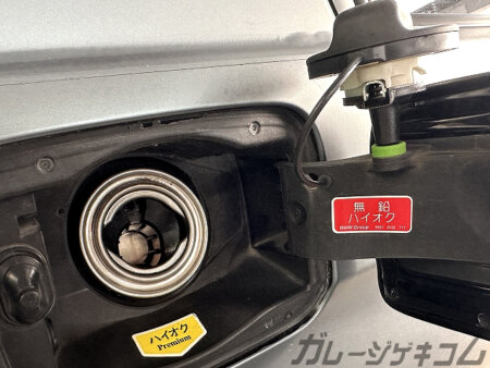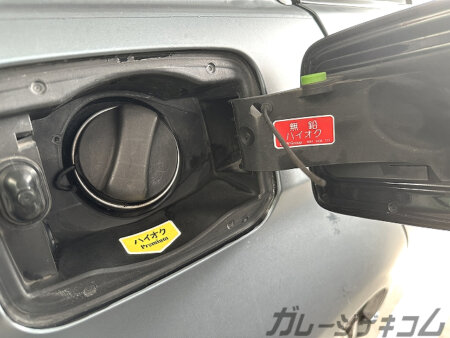 今時の車としては珍しくもなんともないフューエルキャップケーブル。セルフのガソリンスタンドを利用しているのですが、今回キャップを外して給油中差し込み穴(赤い無縁ハイオクステッカーの上部)に置こうと動かしていると、今までの感触とは違う稼働量…そう切れてしまったのです。